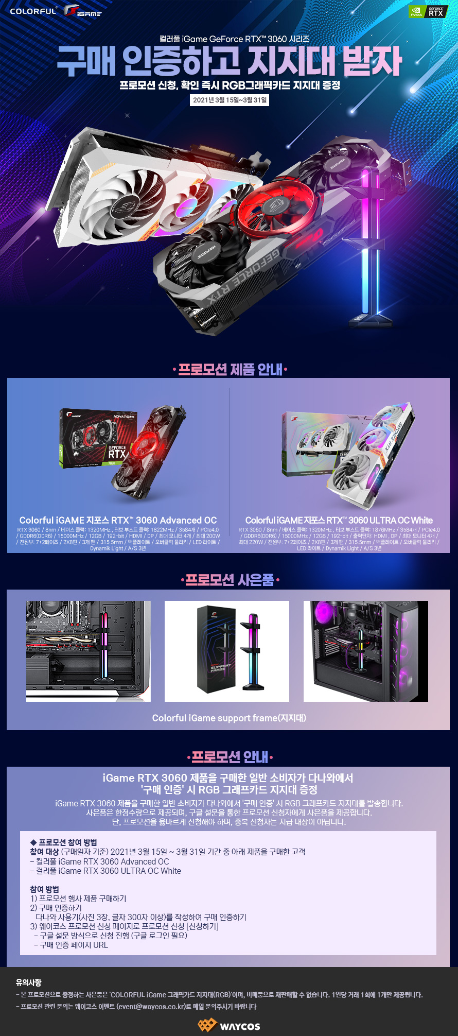 - ‘RGB 그래픽카드 지지대’ 사은품 증정 프로모션- 컬러풀 iGame 지포스 RTX 3060 Advanced · ULTRA OC 구매자 대상 프로…